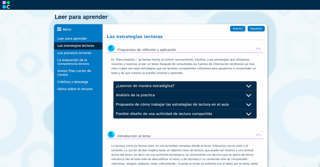 La plantilla presenta un estilo moderno basado en tonos azules, que van desde un azul intenso en el menú lateral hasta azules claros y suaves en el fondo, creando una sensación de orden y serenidad. El uso predominante del blanco en las áreas de contenido refuerza la claridad y facilita la lectura. Los contrastes entre texto oscuro y fondos claros están bien equilibrados, asegurando legibilidad. En conjunto, el diseño transmite limpieza, coherencia visual y una organización clara de la información. (Licencia CC BY-SA).